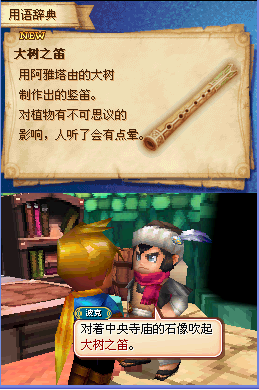 路是唯一的(别的路走两步就会发现是死路)到达中央大树前的石像面前,使用大树之笛。晕乎乎地就掉到洞里了……发生剧情,遇见哈尔玛尼。剧情后跟着哈尔玛尼去见国王普特斯(貌似根据剧情的解释,普特是国王的意思,而斯才是他的名字)