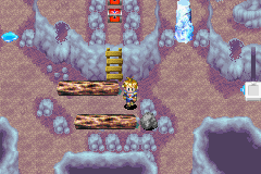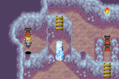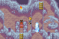 然后冰冻,龙吐火焰化解冰柱,跳过去再结冰,过去推开木桩加宝箱堕天使钻戒.(给佩带了诅咒武器的人物装备上,战斗中就不会出现无法行动的异常状态了)