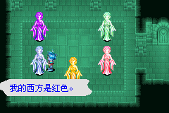 到达5个女神像房间.对女神像读心会有提示.黄色神像\我的东南方是紫色;紫色神像\我的西北方是红色;红色神像\我的东南方是紫色;蓝色神像\我的西方是红色;绿色神像\我的东北方是黄色. 紫色在黄色东南方也就是黄色在紫色的西北,绿色又说她的东北方是黄色.可以推出黄色在中间,紫色在右下,绿色在左下.紫色说我的西北是红色得出红色在左上.蓝色说我的西边是红色,蓝色在右上.推好后门会开启,通过.