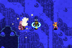 往上爬,暂时无视水滴,先抓火星精灵-闪烁。最后返回绳索那走过去 走出悬崖。