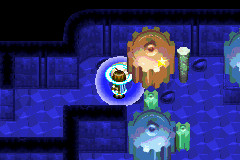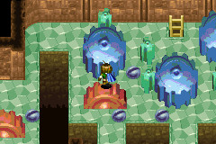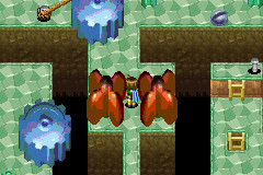 从左往右使用旋风 再从上往下使用旋风吹下吐风机 最后加宝箱后通过