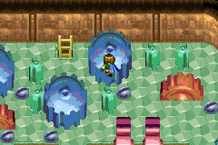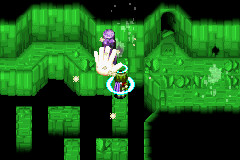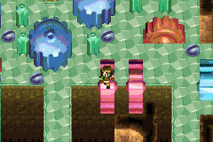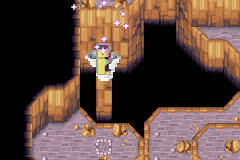 有两个粉红齿轮的地方,走上左边的粉红齿轮掉下去。