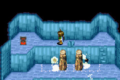 返回入口,这次走左面。对着冰墙使用爆裂。下面加两个宝箱[幸运徽章、疾风之羽]右面加两个宝箱[闪电之剑、治疗药水]
