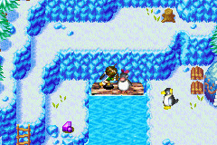 滑下去将企鹅推过去获得漂亮石头。