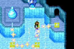 通过有水晶的房间到达蓝色水滴处使用雨水。随便选择左右任意路线过去加水瓶之心。
