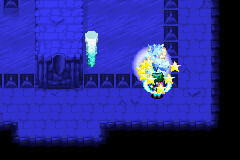 沿路走去,当水刚冲完后立刻使用雨水。然后再立刻使用冰霜,从上面跳过去。