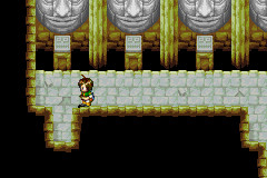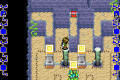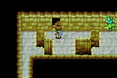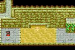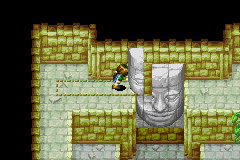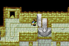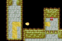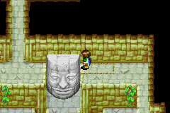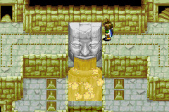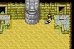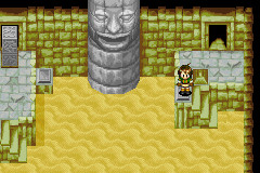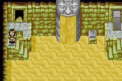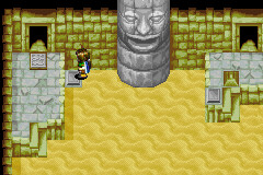 返回,来到石像流沙下面,使用沙化上去。爬到右面进入。