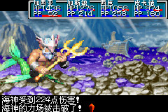 然后通过急流出现海神战斗,在战斗中首先要使用三叉戟破海神力场才可以.