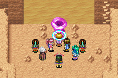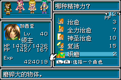 最后到顶峰与莫帕战斗,胜利后获得盘旋之玉。进村子右面的房间后上楼梯。往右走将木柱移动下去。再到莫帕家下楼,右下牵引过去加木星精灵-气味。村子右面占卜师房间里调查有个幸运胡椒粉。