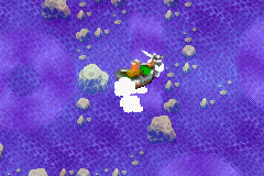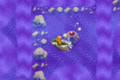 首先向上穿过两个旋涡,围绕山口转两圈,看准时机冲过去.再向右穿过一个旋涡,然后向上穿过三个旋涡围绕山口转三圈冲过去到达星星图案处.再向左穿过三个旋涡围绕山口转两圈看准冲过去.向右,再向下,再向左穿过旋涡围绕山口转三圈冲过去到达 月亮的图案.再向下穿过两个旋涡围绕山口转二圈冲过去.最后向上穿过六个旋涡围绕山口转三圈通过.