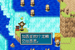 首先将船开到世界地图西南,进入东南小岛。将木柱推下去,再将上面的箱子也推下去,过去加龙鳞。