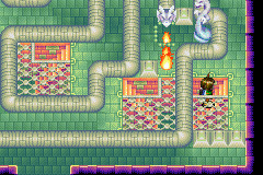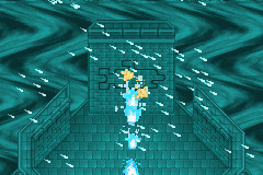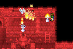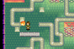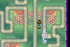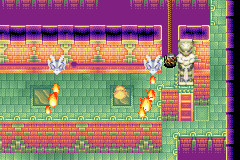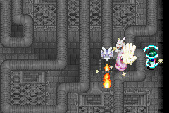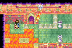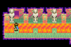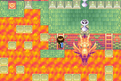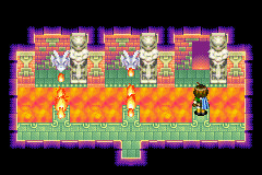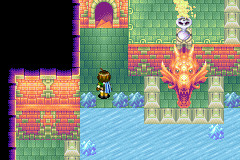 从左边旋涡使用风暴,移动龙型雕像挡住吐火口