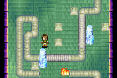 回来,从冰上掉下去,以左-下-右-上-右-上,上梯子使用炎