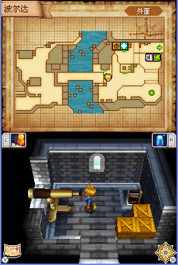 到旁边国境线上的门的二楼,从望远镜可以看到对面比利比诺辖区内有个洞和小树苗……可是过不去,先记着这里吧。从二楼出来,利用抓握到达旁边的屋子上,下台阶,得到里面的风精灵希洛克。