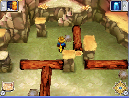 接下来另一个有冰面的场景上,通过右、上、左、上、右、下、右可以离开冰面,然后绕到上面再次走上冰面,通过下、右、上得到宝箱里的巨斧。然后继续沿路行进,推下石柱。