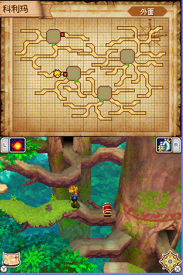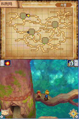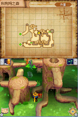 从宿屋的二楼往外走,科利玛村的高处是错综复杂的树枝,多多利用小地图吧,往下走得到宝箱里的光之护腕。而往右的斜坡滑下再向上走可以得到宝箱里的防护靴。