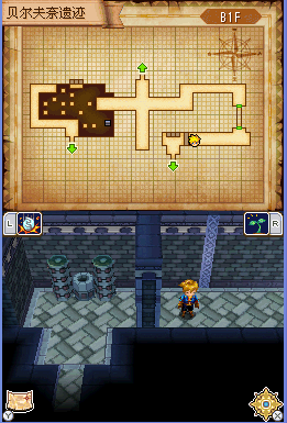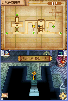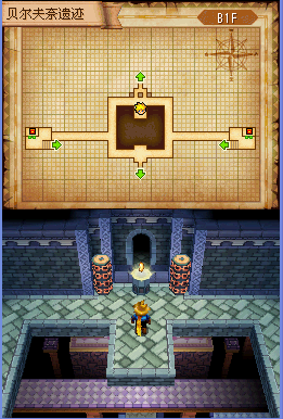 刚进入会看到之前从教堂地下收得水精灵的密道,下面有个红鼻子雕塑——这里没用。从贝尔夫奈城最右侧的台阶向下可以到达那里,但是可以这么行动的时候身边没有史黛拉——唯一的机会,就是刘项在科利玛的分岔路把手套交给穆特以后,在去神鸟岩山之前回来,但是拍打红鼻子石像之后进入的位置需要一个地壳碎片才能继续前进,而没去神鸟岩山是没有这个道具的,去过神鸟岩山之后勇气手套又会被刘项抢走。事实上,这条路和之前恭帕遗迹的两滩水一样,是为了使NPC行动合理化而产生的,刘项和宝山抢走了一个地壳碎片之后就是从这里进入遗迹的。