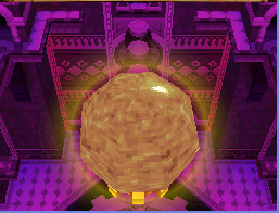 对里面的石球使用旋风,激活风的开关。大齿轮房间里的某个结构(实在不知道怎么形容了……称呼它为转臂吧)开始旋转,回到大齿轮房间,跳上转臂,来到同层的另一侧再跳下。先下台阶推下石柱,获得宝箱里的600金币。回到台阶上,进门。