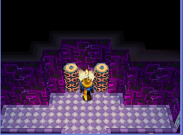 路上有个很多可砸的柱子的房间,把左下两根以外的柱子全部敲下可以得到宝箱里的哈格本权杖(南瓜头状OTL),接着再敲下右下的一根和左下的两根可以前往下个场景。