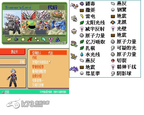 盔甲鸟近强攻,碰上克制它会毒毒/撒菱,很讨厌...双刀钢甲暴龙有点意外,但是配招实在太极端,实际威胁不算大.下来4只有提升自己能力的技能,所以不要太多引诱他们用原子力量或者慧星拳比较好...