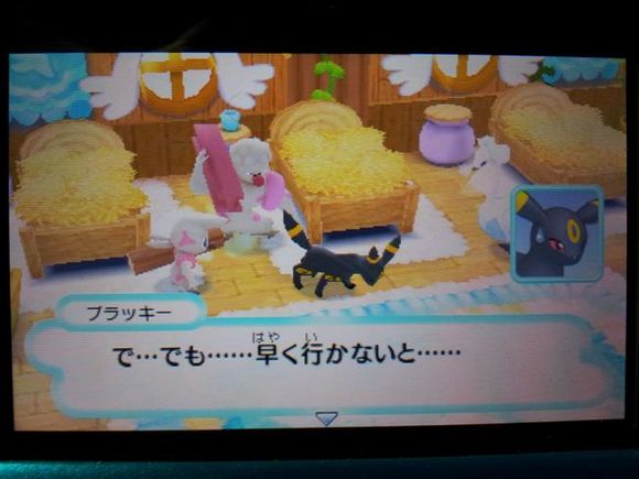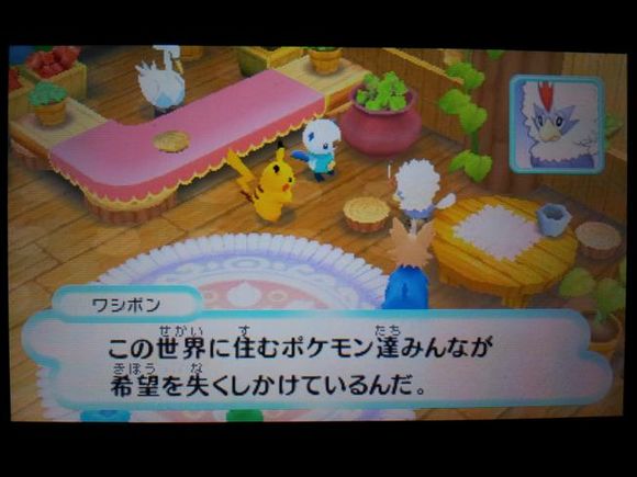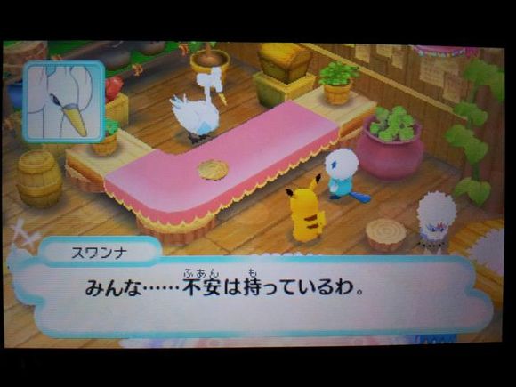 来到宿场町发现外面空无一人,进入食堂把伙食费交给首席天鹅后它提到最近大家因为不明PM的出现而感到不安