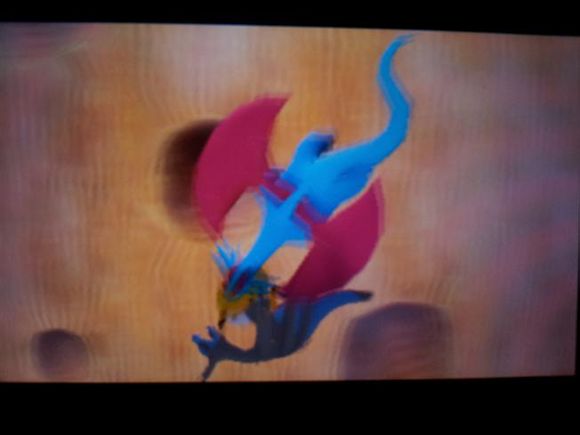 获胜后水晶灯火灵想从背后偷袭导电飞鼠,被赶来的太阳精灵打倒