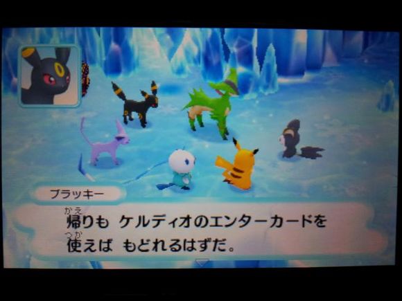 从月精灵处得知想要去【グレッシャーパレス】需要凯路迪欧的特殊卡片