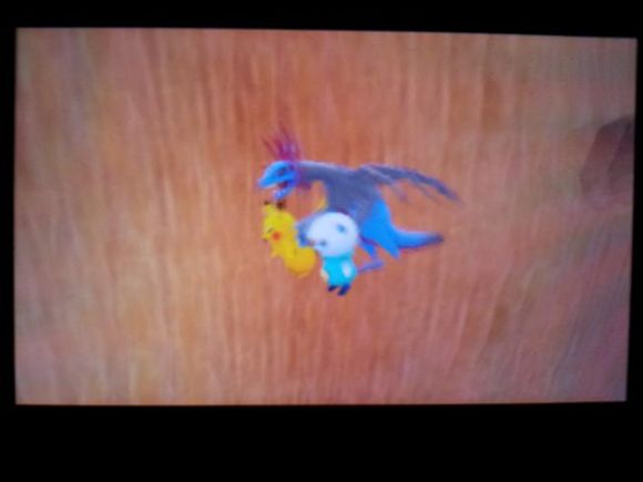 皮卡丘和水水獭一路逃到了悬崖边上,被及时赶到的三头龙救走,接着暴蝾螈出现追赶三头龙但三头龙还是保护着皮卡丘和水水獭到达了安全地带