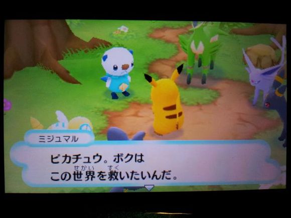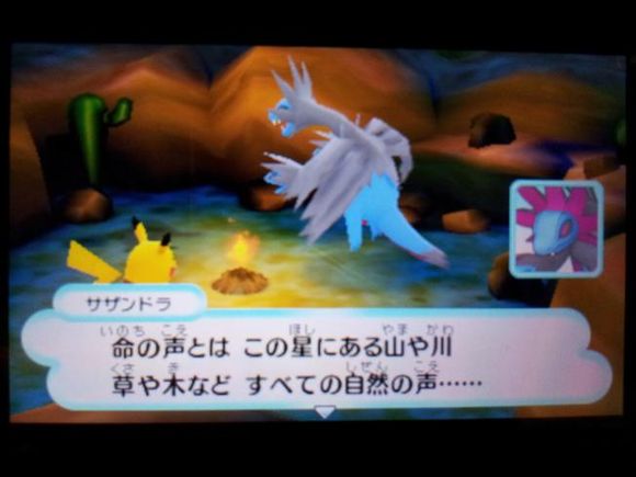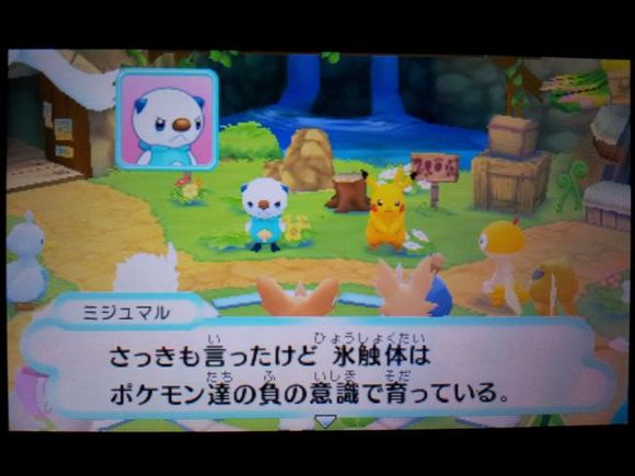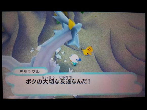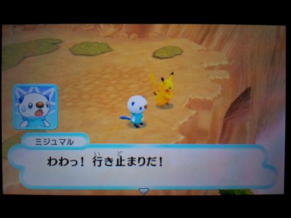 接着三头龙带着皮卡丘来到了【风穴の丘】,在这里发现了记录着水水獭留言的留言结晶