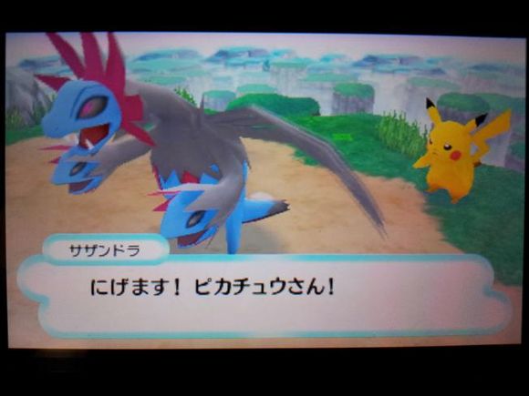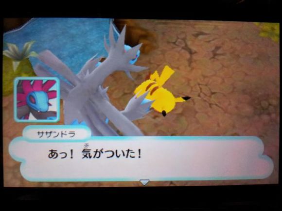 获胜后暴蝾螈出现,在刚才的战斗中精疲力尽的皮卡丘已经无力抵抗了