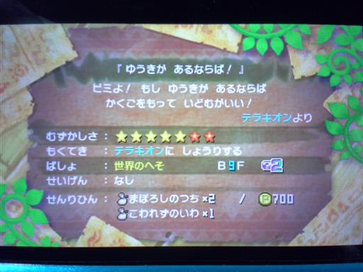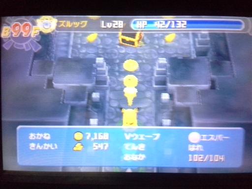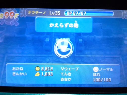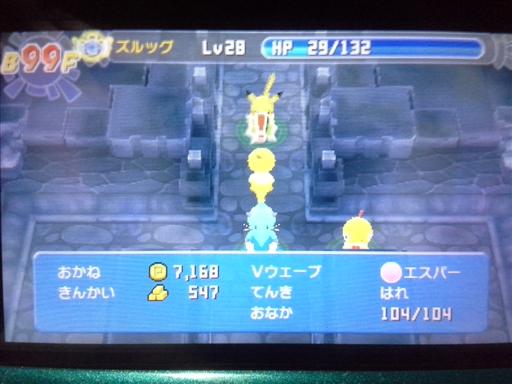 另一个99F迷宫【かえらずの地】突破,进入该迷宫时不能携带钱与道具,且只能带一只PM进入并强制降到5级