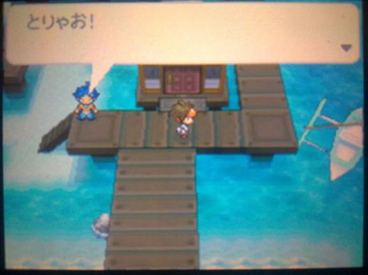 进入道馆后得知馆主去游泳了不在道馆内,走到青波市上方的木桥那儿馆主水浪突然从水中蹦了出来,得知有挑战者前来挑战后便返回了道馆