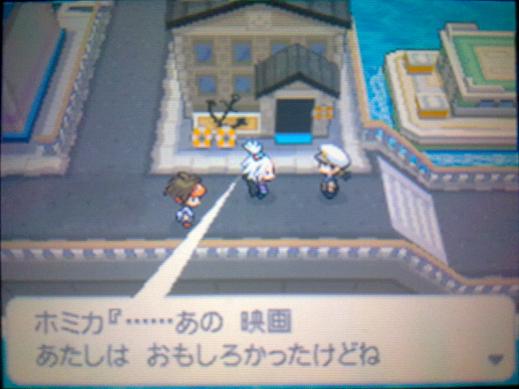 打败劲敌后白露带你参观PM中心,离开PM中心后遇到妈妈及劲敌的妹妹,得到跑鞋(按B可以跑步了)及地图