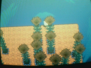 踩点后,把石头往左推到红蘑菇面前,推下去