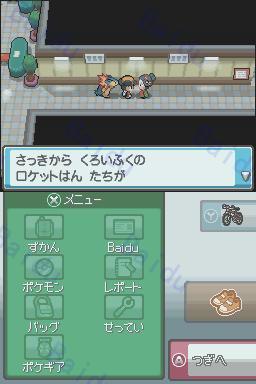 右上方的岔路口有一个火箭队队员给主角化妆成火箭队成员
