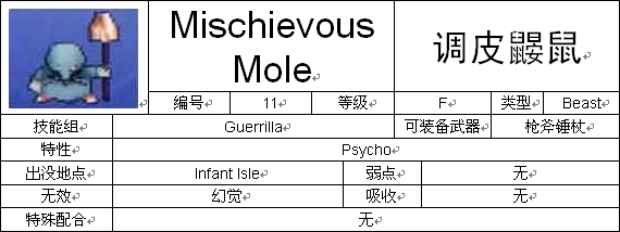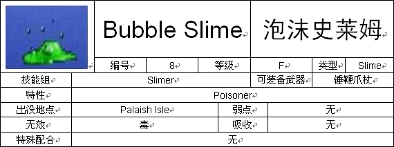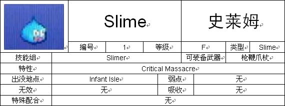 (1)图鉴中写的怪物出没地点并不一定是该怪物出没的唯一地点,例如Slime在Infant Isle和无名岛都有出现。