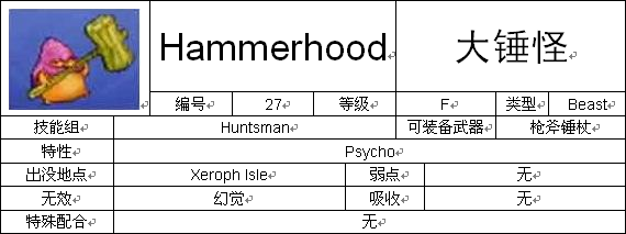 (3)怪物图鉴中“弱点”“无效”“吸收”三栏中的内容均为该怪物在未获得任何抗性技能时的情况。