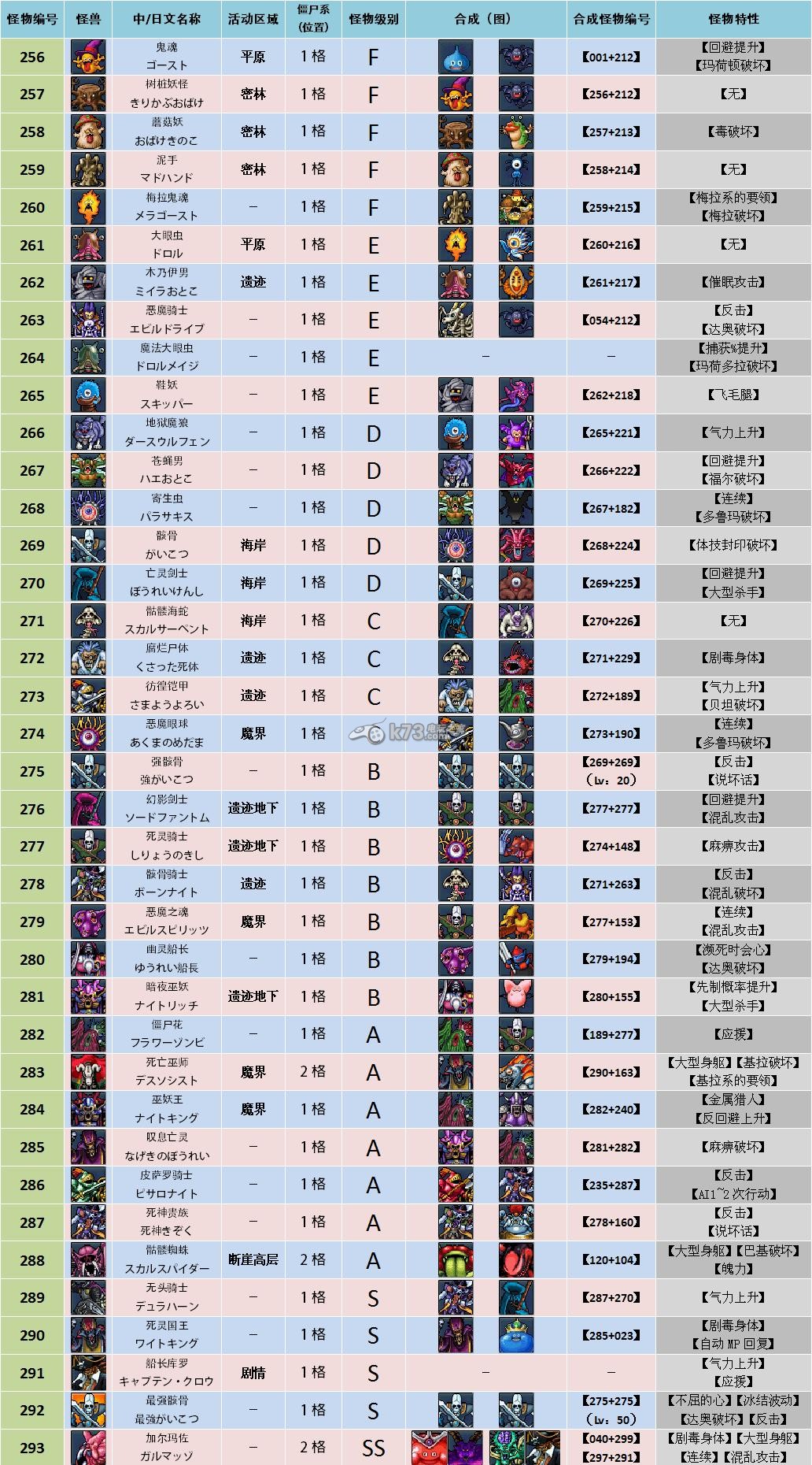 《勇者斗恶龙怪兽篇joker2》怪物图鉴256-293: