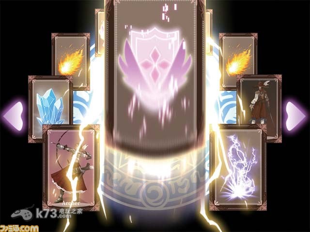 本作的战斗部分采用的上画面显示角色的操作界面、使用普通攻击和魔法攻击与英灵展开战斗,下画面用来展示你的卡组等信息,你可以选择不同的卡组发动不同的魔法攻击。