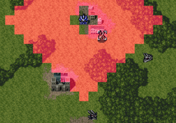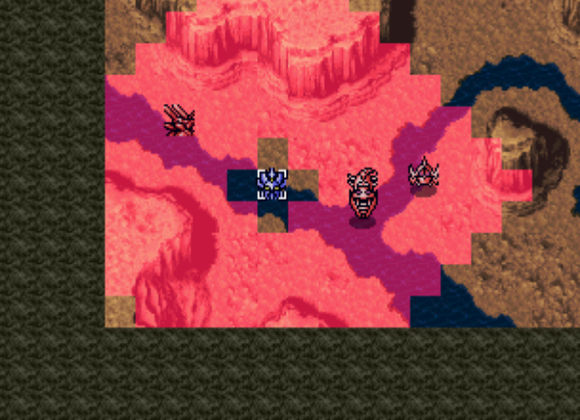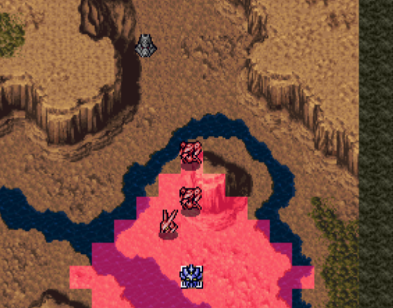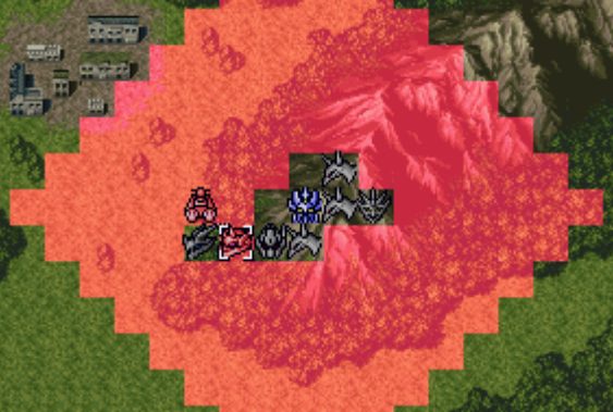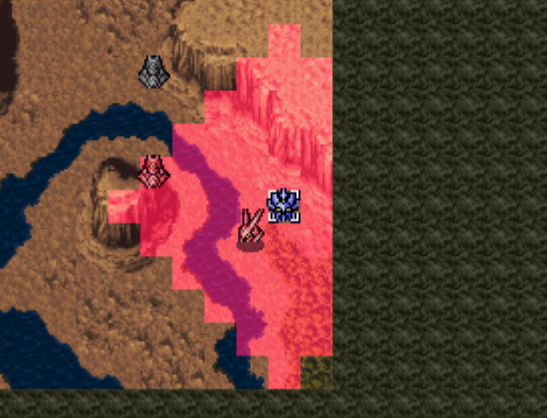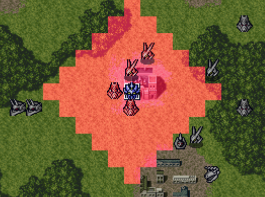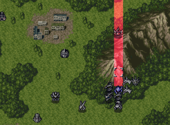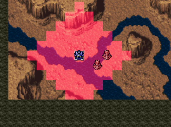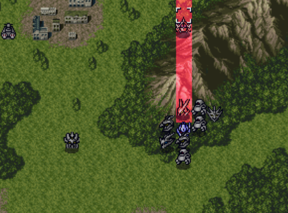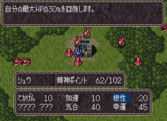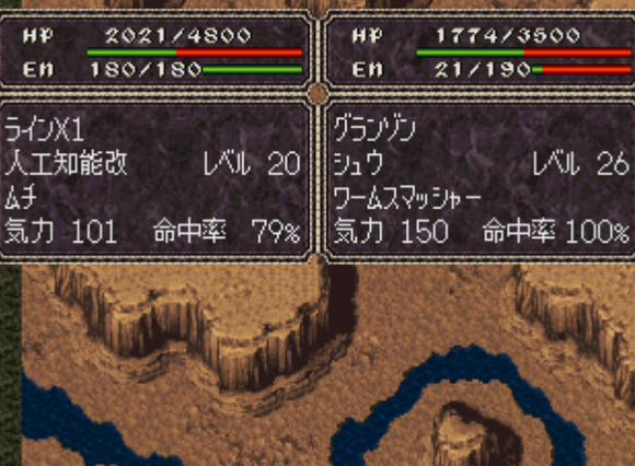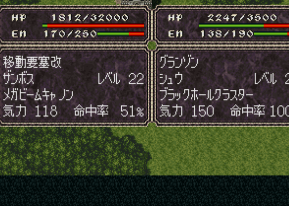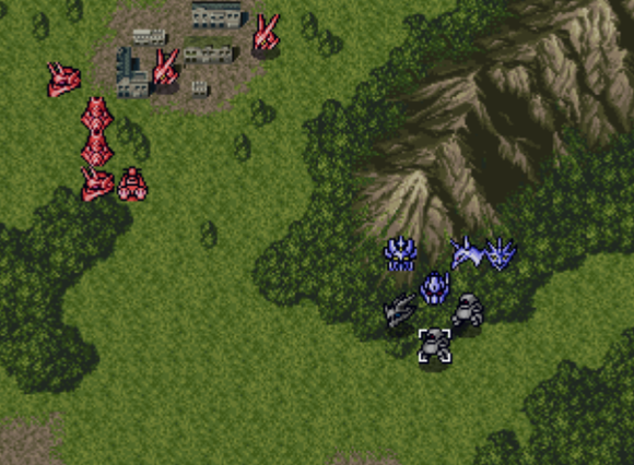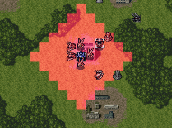 所以我采用RP流。只要RP不是太差就很好打,首先站在如图的位置。这样下面2个魔装机神都会用近身格斗攻击你,都选择反击,上面一个飞行的也会攻击你也反击。第二回合根性2次之后MAP圈掉他们。
