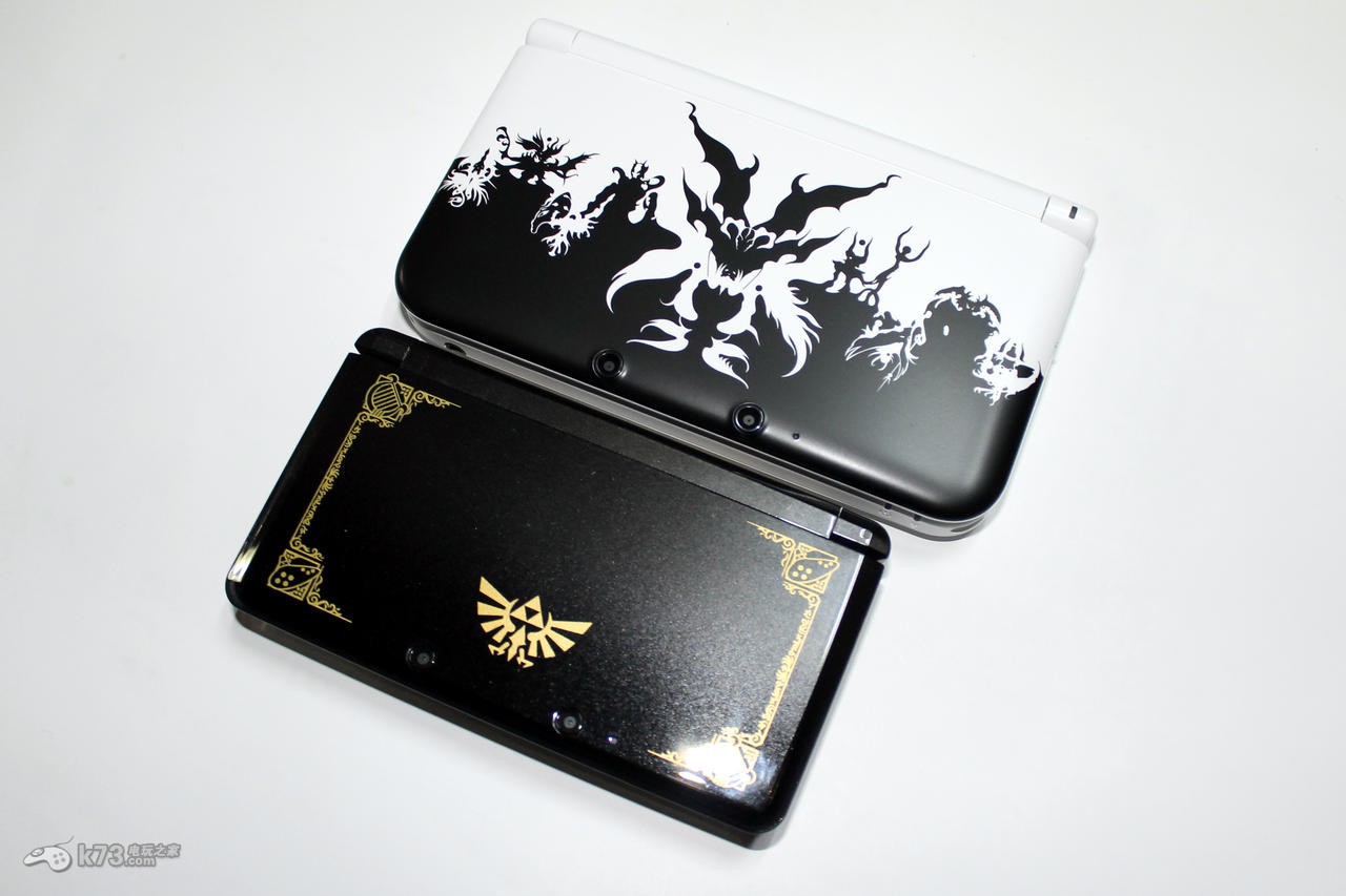 《真女神转生4》限定版3dsll主机与《塞尔达传说时之笛3D》限定版3ds主机对比:块头要大上不少啊!
