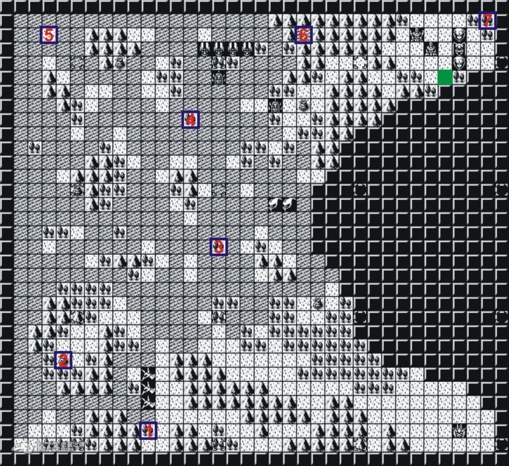 | 主角机直接向左上角一路杀去,剩下的战力把左边的几个小怪杀了,然后直上会合,稳打的就占领2上面的据点打,BOSS旁边的葵曼莎比BOSS还厉害,逐个击破,增援的铁奥一点威胁都没有,没有上水面就给灭了。 |