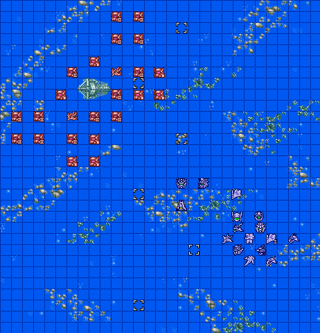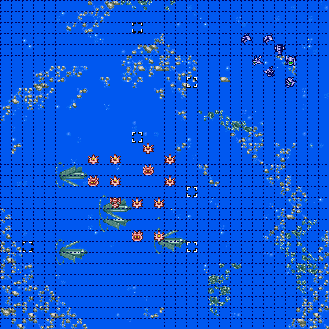 攻略要点: 本关开始时死神和飞翼高达以及托拉斯加入,问题是W高达系的回避一向不好,而敌方虽然单兵能力差但人数众多,因此应该先让此3人在原地待命一回合,等大部队上来之后再向前推进,在战斗中注意活用飞翼和亚加玛的MAP炮(如果你有派亚加玛上场的话),即可轻松结束战斗。 此关难度仍然不高,唯一需要注意的还是尽量不要用光线武器攻击敌人的MD,由于这一点,这关即是MACROSS系机体大显身手的好机会。 |