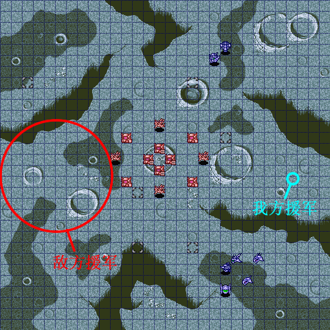 攻略要点: 开始时我方被敌人分割成两部分,而上半部分只有米利亚尔特和布拉度,虽然如此,但敌人的实力也并不强,因此上边的部队一样可以放心大胆地向下冲,第3回合我方的增援会出现在地图右侧,唯一需要注意的是光线武器对敌方的人型兵器威力会减弱。 全灭初始敌人后敌方增援出现在左下角,此时可盘踞于月面都市上,排好队形将敌人一一消灭,敌方母舰HP25000,同样会在HP低于10%撤退,过关后卡谬和花园丽加入。 |