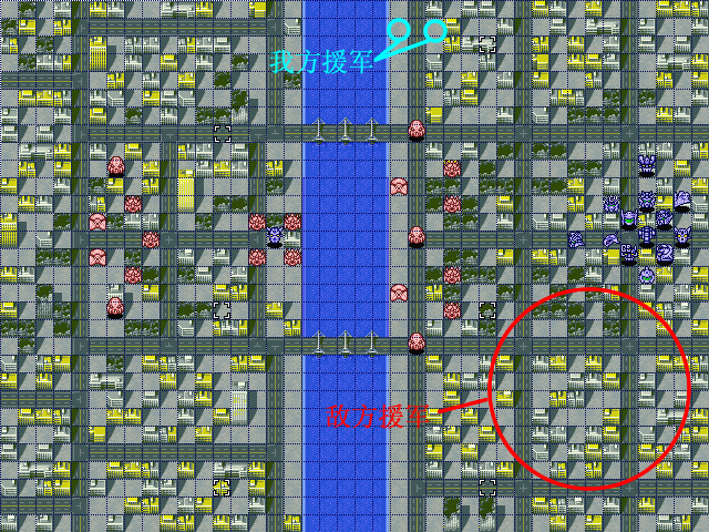 攻略要点: 本话初期敌人只有12台分布在左上角,敌方Fz-109Aエルガーゾルン的运动性比较高,使用集中战术围剿。在击退7机以后,敌援军从左下角出现,而自军援军,拿吉他的问题少年バサラ也登场,好好利用他的歌系统是这话取胜的关键,因为BOSSギギル的射程很远,有8格的范围,加上回避和命中非常高的。战胜ギギル以后可以获得芯片ハイブリットアーマー,但是注意,如果直接击倒ギギル,敌兵就会全部撤退。 |