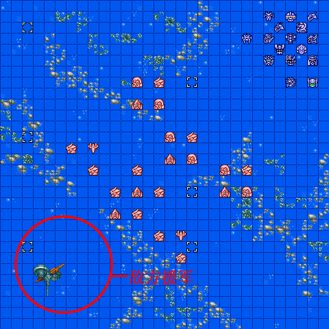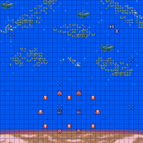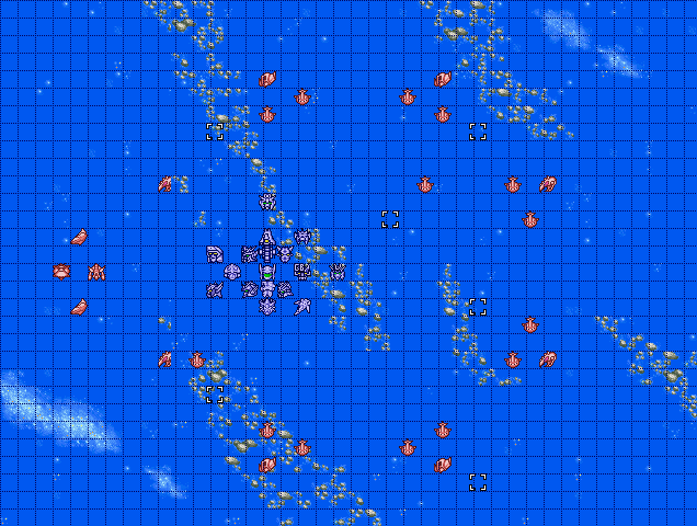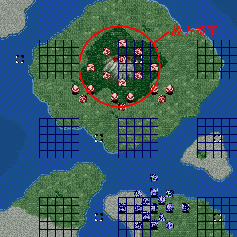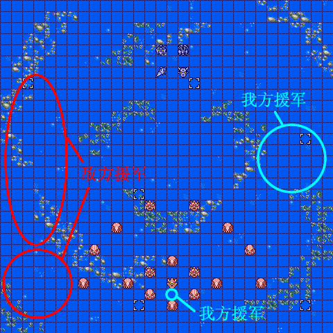 攻略要点: 本话一开始地图上方的インベーダー比较容易解决,在早期敌人只剩下5机以后,敌人援军从地图左上侧出现,全部消灭完以后进入后半部分战斗。 |