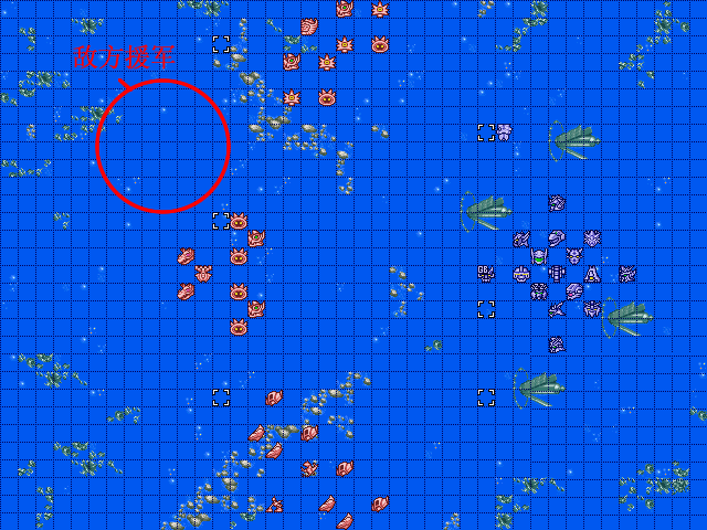 攻略要点: 本话要守住4个卫星,可谓任务艰巨。而敌人一共有3批,采用分散迎击的方法把敌人逐个消灭。当把初期的敌人打到只剩5机的时候,敌援军从左上方出现。记得在此话里面可以用タケル说得マーグ,但还不会加入。而クロッペン是需要打两次的,第二次变身以后,能力比较强,建议留到最后集体874。 |