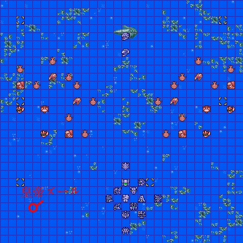攻略要点: 本话初期敌人和我军的位置非常接近,注意敌人的ドッゴーラ,此机体实力是很强的,应当优先照顾。在击破6机以后,敌援军从左上,左下和右下方出现,起先的敌人全部撤退。而剑人也作为援军加入本方。在敌军剩下10台的时候,マーグ带领敌援军从右上方出现,当敌机总数小于10或者クロッペン被击破时,敌人就会全部撤退。而当マーグ被击破时,与他随行的援军就会撤退。此话中的クロッペン依然要打两次,而第二次他会在HP20%以下时撤退。 |