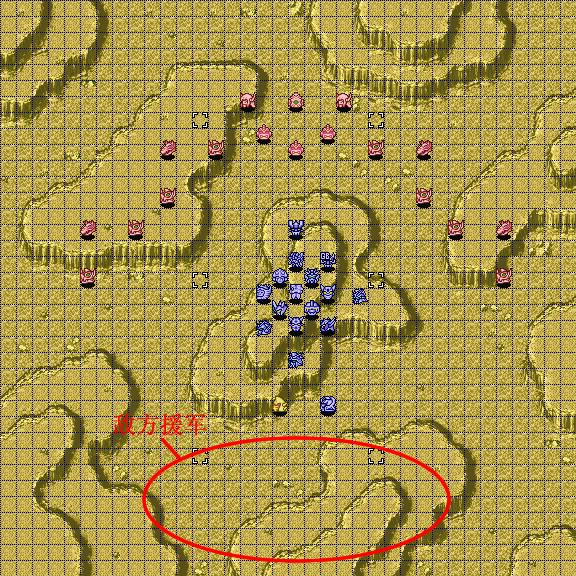 攻略要点: 本关的敌人主力仍然是MS,面对敌人互相援护的情况,最好的方法是利用C武器和MAP兵器来攻击,而由于对手同样拥有C武器,因此我方的阵型千万不能太过紧凑,否则的话肯定是损失惨重。 当初始敌人仅剩5人时,敌方增援会出现在左下角,由于敌人能力不高,因此只要注意了以上两点本关就会变成一场十分轻松的大屠杀,全灭敌人后进入第2部分。 |