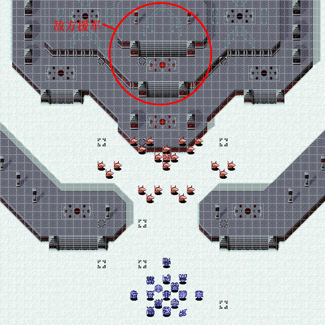 攻略要点: 这里要炸毁敌人的能量装置。注意敌人只剩5机的话就会再下一个需要爆破的地点无限增援。尽量派机动力高以及会加速的机体突入。每爆破一个能量装置就多出7回合时间,所以应该还是很充裕的。全部爆破完毕后要求7回合脱出。由战舰带着跑路吧.....逃跑的路在最左上方,记得不要留下机体在初始位置....不然...(其实全灭敌军也能过关) |